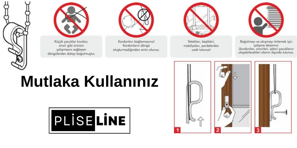 Çocuk güvenlik kitini önemle kullanmanızı tavsiye etmekteyiz . Mekizmalı perdelerin zincirleri ne çocuklar ilgi duyabilmekte oyun amaçlı boyunlarına geçirebilir ancak aksilik durumunda örneğin zincirin boğazına takılı iken asılı kalması gibi durumlarda çok büyük risk taşımaktadır ÖNEMLE RİCA EDİYORUZ çocukların yetişebileceği alanlarda çocuk güvenlik kitini monte ediniz . Çocuk güvenlik kiti tüm mekanizmalı perdelerde ücretsiz olarak ürünün içerisinde bulunmaktadır.